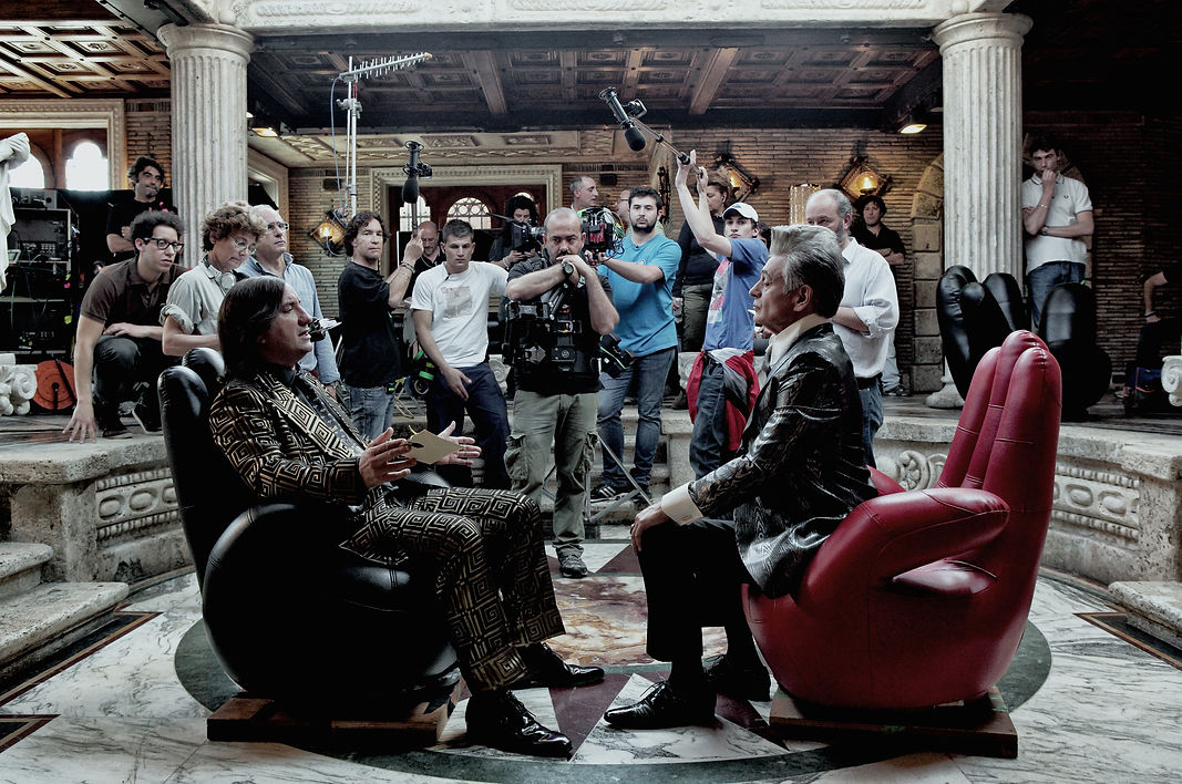 ... just as over the top are the scenographies curated by Marco Belluzzi: a winning touch to give an effect of abnormality. The Palaces of Politics thus appear to be rarefied marble structures (the set is the EUR neighborhood in Rome), the parliament is a football fanatic pit ...